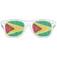 Le drapeau guyanais est un champ vert avec un triangle sur un triangle à gauche. Les couleurs utilisées dans le drapeau sont le rouge, le vert, le jaune, le blanc, le noir. La proportion du drapeau guyanais est de 3:5. Le drapeau du Guyana a été adopté en 1966.