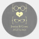 Lunettes geeky chic et sexy Stickers de Mariage en tableau jaune avec un coeur mignon flanqué de deux paires de lunettes nerveux, une paire de manteaux et une paire de ceintures représentant le marié et la mariée sur un arrière - plan de tableau noir. Ces autocollants de mariage offbeat sont parfaits pour votre mariage geek! Facile à customiser, il suffit d'ajouter les détails de votre mariage dans les champs de texte fournis. Cliquez sur le bouton "Customiser" pour trouver d'autres options de personnalisation.
