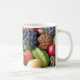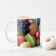 Fotografie einer Vielzahl von köstlichen und farbenfrohen Früchten auf beiden Seiten der Tasse gedruckt.