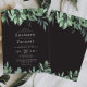 Dieses einladende Hochzeitsdesign besticht durch üppige Aquarellrahmen oben und unten auf schwarzem Hintergrund. Personalisieren Sie es mit den Namen der Braut und Bräutigam und Hochzeitsdetails in weiß. Die Rückseite wiederholt das Grün und den schwarzen Hintergrund.
