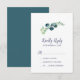 Diese üppige grüne und eukalyptus einfache RSVP-Karte ist perfekt für eine elegante Hinterhofhochzeit. Das moderne botanische Design besticht durch herrliche Aquarellblaue Eukalyptusbäume und grüne Blätter.