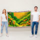Entdecken Sie eine lebendige, stilisierte Landschaftsdarstellung mit üppig grünen Hügeln, orangefarbenen Blume und Früchten, die im Glanz einer großen Sonne baden (Dieses Design aus KI). Bestellen Sie noch heute und Embrace the Joy of Shopping!