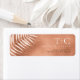 Eine trendige Farbpalette in Terracotta-, Kupfer- und Rosttönen, funkelnde geometrische Rahmen und elegante Designkonzepte bilden die Basis für diese aufregende Hochzeitssuite. Egal ob Sie eine Hochzeit in Urlaubsort planen oder nah zum Zuhause bleibe werden, dieses zarte Set aus Palmenblättern bietet eine auffällige Auswahl. Das hier gezeigte Hochzeitsadresslabel stellt eine Vorlage zur Verfügung, mit der Sie ganz einfach Ihre eigenen Initialen, Namen und Adressen hinzufügen können. Durchsuchen Sie ID956 um weitere Teile und Farboptionen für dieses Set zu sehen.