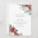 Diese schlichte und schicke Hochzeitseinladung besticht durch herrliche Blume in Aquarelltönen und Grünpflanzen mit einer Touch eleganter Kalligraphie und klassischer Typografie. Frische rot-lusige, blau-weiße Blume bilden einen schönen botanischen Rahmen für diese moderne Hochzeitseinladung.