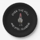 Lustig über dem Hügel-Hahn-noch gluckernden Party Pappteller