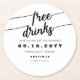 Senden Sie diese Untersetzer "der freien Getränke" Save the Date aus, um Ihre Familie und Freunde für Ihren wichtigen Tag auf eine einzigartige und Spaßart Save the Date zu machen. Die Ausrüstungsbeschreibungen "freie Getränke" in einem einzigartigen schwarzen Farbkalligraphie-Schriftart. Personifizieren Sie den Entwurf, indem Sie den Text ersetzen.