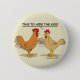 Lustige Huhn-Osterei-Jagd-Cartoon-Beige Button