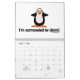 Lustige Pinguine. Jede Seite hat ein unterschiedliches grafisches Cartoonzeichnen von Penguins mit lustigen Sprüchen. Garantiert, um ein Lächeln auf Ihr Gesicht zu setzen und Sie jeden Monat des Jahres lachen zu lassen. Der Text kann geändert werden/besonders angefertigt werden. So, gehen Penguinliebhaber, besonders anfertigen einen Kalender voran, den Sie das ganze Jahr hindurch mit diesen niedlichen und albernen Penguins genießen.