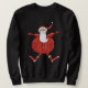 Ein lustiger Weihnachtsmann kleidete im Rot mit einer Strumpfkappe auf T - Shirts, Sweatshirts, Tassen, Karten, Aufklebern, Taschentaschen, mousepads, Magneten und anderen Feiertagsgeschenk- und -kleidereinzelteilen an.
