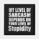 Wenn Sie lustige sarkastische Zitate oder großartige humorvolle Designs mögen, ist dieser originelle Slogan "Mein Sarkasmus hängt von Ihrem Grad an Dummheit ab" für Sie. Es ist ein ausgezeichnetes Geschenk für Ihre Familie, Freunde oder Sie selbst! Dieses Design ist ideal für alle, die Sarkasmus und Spaß Lieben. Wenn Ihnen dieses lustige Zitat gefällt, Karo mehr ähnliche Kunstwerke im Auslassladen. Bleibe sicher und danke für die Unterstützung eines lokalen Künstlers.