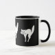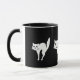 Dieses Halloween-Bild einer lustigen Katze mit seinem, das zurück in den Überraschungs- und Schockblicken groß sind gegen den schwarzen Hintergrund dieser coolen Qualität Halloweentee- oder -kaffee-Tasse gewölbt wird, bin ich sicher, dass jedermann, das diese ursprüngliche lustige Katzenschwarz-Tasse für Halloween empfängt, angenehm überrascht ist.