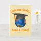 Schauen Sie heraus Welt, ich herkommen! Lustige Abschluss-T - Shirts u. -geschenke mit einer Welt, die eine Abschlusskappe trägt!