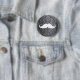 Lustiger weißer Schnurrbart auf schwarzem ledernem Button