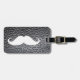 Lustiger weißer Schnurrbart auf schwarzem ledernem Gepäckanhänger