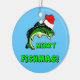 Fröhliches Fishmas! Lustige und unglaublich witzig springende Fische mit der Weihnachtsmannmütze, die Ihnen frohen Weihnachten die einzige Weise kann er wünscht. Humorvolle Fischen Weihnachtsgeschenkverzierungen, zum des Feiertag Weihnachtsbaums für den Fischer zu verzieren.