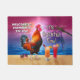 Das Huhn in diesem humorvollen Entwurf weiß, dass wann er ist - es ist Zeit zu trinken selbstverständlich weil es Cocktailzeit ist! Diese alberne tropische Kunst ist für jedermann perfekt, das Lieben das Meer und die Hühner und die Margaritas und das Paradies und der endlose Sommer. Sie zeigt einen Hahn, der mit bunten Getränken eines Paares krähen und ein Paar Sonnenbrille. Der Hahn steht auf Sand nahe bei dem Ozean und einem vibrierenden Sonnenuntergang. Im Hintergrund schwimmen Palmwedel und klare Fruchtscheiben undurchsichtig in den Himmel mit einem träumerischen Blick, weil offenbar dieser Hahn wenig zu viel auch Getränk gehabt hat. Dieser Spaßentwurf ist für ein Strandhaus, eine Sommer-Hütte, ein tropisches Bar - oder der Huhnkorb perfekt. Benutzen Sie die Schablonenfelder, um Ihren personalisierten Text zu addieren. Wählen Sie Ihre eigene Fußmattengröße.