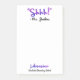 Lustiges personalisiertes Shhh! Schulbibliothekar-Zitat-Post-ItNotizblock. Lila Beschriftung Watercolor Brushstroke sagt "Shhh!" in den Zitaten. Personifizieren Sie mit dem Namen des Bibliothekars und Namen der Schule. Bibliothekar geschrieben in den hübschen lila und blauen Watercolor, der Brushstrokes anredet. Moderne und modische Geschenkideen für Schulbibliothekare. Seien Sie ruhiges Bibliotheks-Spaßgeschenk für Ihren Lieblingsbibliothekar. Kundenspezifische Post-Itanmerkungen für Bibliothekare.