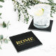 Lux Untersetzer Design zeigt Rom, Italien Breiten- und Längengrad-Koordinaten in goldenen Schriftart auf schwarzem Hintergrund.
