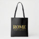 Die Lux Tote-Tasche enthält die Koordinaten der Rom-, Italienischen Breiten- und Längenkarte in goldenen Schriftart auf schwarzem Hintergrund.