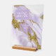 Dieses individuelle Design mit einer Alkoholfarbe, die in den Farbtönen von sanften Lavendeln bis hin zu lila lila mit glitzernden Goldakzenten abstrakt ist, eignet sich perfekt für ein romantisches und elegantes Hochzeitsthema. Das hier gezeigte Acryl-Hochzeitszeichen enthält einen einzigartigen Text "Karten & Geschenke" und bietet eine Vorlage, um Ihre Initialen, das Hochzeitsdatum und Dankeschön-Nachricht einfach hinzuzufügen. Durchsuchen Sie ID990 um weitere Stücke in diesem koordinierten Set zu sehen.