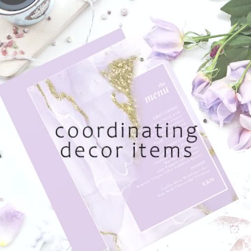 Dieses individuelle Design mit einer Alkoholfarbe, die in den Farbtönen von sanften Lavendeln bis hin zu lila lila mit glitzernden Goldakzenten abstrakt ist, eignet sich perfekt für ein romantisches und elegantes Hochzeitsthema. Das hier angezeigte Gefälligkeitsfeld stellt eine Vorlage zur Verfügung, mit der Sie ganz einfach Ihre eigenen Initialen, das Hochzeitdatum und die Dankeschön-Nachricht hinzufügen können. Durchsuchen Sie ID990 um weitere Stücke in diesem koordinierten Set zu sehen.