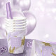 Dieses individuelle Design mit einer Alkoholfarbe, die in den Farbtönen von sanften Lavendeln bis hin zu lila lila mit glitzernden Goldakzenten abstrakt ist, eignet sich perfekt für ein romantisches und elegantes Hochzeitsthema. Der hier abgebildete Papierbecher bietet eine Vorlage, um einfach Ihre Initialen, Hochzeitstag und Dankeschön-Nachricht hinzuzufügen. Durchsuchen Sie ID990 um weitere Stücke in diesem koordinierten Set zu sehen.