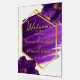 Welcome guests with dramatic elegance using the Luminous Violets Acrylic Wedding Welcome Sign, a striking statement piece designed for refined, modern celebrations. Created in a generous 24 x 36 inch size, this luxury acrylic sign features rich purple tones, expressive artistic detailing, and an elegant gold asymmetrical frame for a bold yet sophisticated presentation.