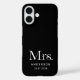 Dieses elegante, minimalistische Handy sagt "Mrs." in einem weißen, modernen, hochmodernen Luxus-Schriftart auf dunklem Schwarz, und hat auch einen Platz für Ihren Nachnamen und Hochzeitsdatum.