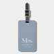 Dieses elegante, minimalistische Flitterwochen-Gepäckanhänger sagt "Mrs." in einem weißen, modernen, hochmodernen Luxus-Schriftart auf staubblau und hat auch einen Platz für Ihren Nachnamen und Ihren Hochzeitstag.