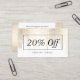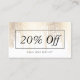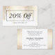 Un ensemble de points de confettis en cascade en faux or créent un motif de design attrayant sur ce design élégant de carte à rabais/coupon. Placez-vous sur un arrière - plan blanc pour un beau motif tonique. Mettez à jour le texte promotionnel pour votre propre offre. Idéal pour les salons de beauté, les salons à ongles, les coiffeurs, les boutiques, les spas et plus encore. Art et design © 1201AM Design Studio