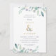 Personalisiert mit Ihren Veranstaltungsdetails, erschwingliche, individuell bedruckte Einladungen für Hochzeitsfeier. Dieses elegante Design besticht durch ein Imitat mit goldfarbenem Blattwerk und einem zarten blau-grünen Aquarell auf weißem Hintergrund. Verwenden Sie die Entwurfswerkzeuge, um den Text anzupassen, die Schriftart und Farben zu bearbeiten oder eigene Fotos hinzuzufügen, um eine klassische und stilvolle Party Einladung zu erstellen.