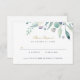 Erschwingliche, individuell bedruckte Hochzeitskarten mit einfacher Boho Aquarell. Personalisieren Sie das Design mit Ihrer Hochzeit RSVP Informationen. Verwenden Sie die Designtools, um den Text anzupassen, eine beliebige Hintergrundfarbe auszuwählen und die Schriftart und Farben zu bearbeiten, um Ihre eigene Hochzeitkarte zu erstellen. Auf der Rückseite befindet sich ein marineblau Hintergrund oder mit dem Leerzeichen können Sie bei Bedarf zusätzliche Foto oder Texte hinzufügen. Dieses schöne, moderne botanische Design ist perfekt für jede Jahreszeit.