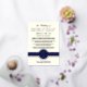 Wählen Sie diese eleganten Hochzeitskarten aus Marineblau, Elfenbein und echter Rose für einen luxuriösen Blick auf Ihre Zeremonie. Diese Reihenfolge der Servicekarten verbindet das klassische Aussehen eines Doppelmonogramms auf der marineblau blauen Band mit dem Design des Siegels am unteren Ende mit einer Mischung aus Schriftart, die dem Hochzeitsprogramm ein modernes Ambiente verleihen. Jedes Textfeld ist leicht zu verändern, sodass Sie das perfekte Programm erstellen können. Zusätzlich zu den eigentlichen Textzeilen in Goldfolie-Rose auf der Vorderseite, kehren diese Reihenfolge der Hochzeitskarten zurück, um einen großen Textvorlagenbereich mit einem einfachen marineblauen Schriftart auf Elfenbein zu enthüllen, wo Sie zusätzliche Details für Ihre Hochzeitsgäste hinzufügen können. Erstellen Sie Ihre eigenen luxuriösen mit Monogramm Hochzeitsprogramme in Elfenbein-, Marine- und Rose-Goldfoliendruck, maßgeschneidert und bedruckt nur für Sie, für eine schöne Ergänzung zu Ihrer Hochzeitszeit Stillstand Suite.