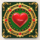 Ein verziert ovaler, goldfarbener Rahmen mit aufwändigen Mustern und roten Edelsteinen umschließt ein pulsierendes rotes Herz. Der Hintergrund zeichnet sich durch eine reiche tiefe greeb-Farbe aus, die das glamouröse und regale Design unterstreicht.