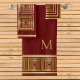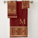 Luxuriöses und elegantes bordeauxrotes und goldenes Badetuch-Set mit individualisierbarem Monogramm / Initial. Schönes Geschenk für erwachsene Männer mit Stil.