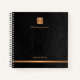 Exklusiv aussehendes Büro oder persönliches mit Monogramm Notizbuch mit einem vergoldeten Glitzer-Quadrat aus Kupfermetall mit Monogramm-Namensinitialen und einem glitzernden Streifen über einem stilvollen Lederhintergrund aus schwarzem Imitat. ++++++++++++++ Geeignet für kleine Unternehmen, Firmenfachleute oder selbstständige Geschäftsleute, Stylist- und Markenfachleute, Makeup-Künstler oder Schönheitssalons, Boutique- oder Ladenmanager. ++++++++++++++++ Bitte beachten Sie, dass die Ledertextur und die Glitzer-Funkeleffekte PRINTED sind.