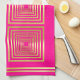 Luxuriöses und elegantes neon Hot Roink, goldenes Küchentuch mit individualisierbarem Monogramm / Initial.