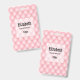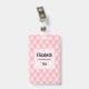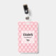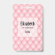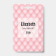 Namensschild mit einem schönen femininen Muster. Weich rosa Muster in puffigen Diamantformen mit einer goldenen Perle in der Mitte. Luxuriöse Eleganz.