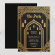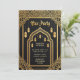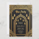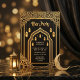 Elegant and luxurious Ramadan Iftar invitation featuring delicate Islamic arabesque patterns in Black, Gold,