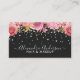 Mit dieser luxuriösen, blumengeschmückten Visitenkarte, die sich perfekt für Haarstylisten, Makeup-Künstler und Schönheitsexperten eignet, stärken Sie Ihre Marke. Der schicke schwarze Hintergrund schafft einen auffälligen Kontrast zu der lebhaften Blumenstruktur in Rosa und Gold mit Damoden, die Eleganz und Kreativität ausstrahlen. Weiße Skripte und saubere serifenlose Schriftart sorgen dafür, dass Ihr Name und Ihre Geschäftsdetails elegant und leicht lesbar sind. Die Vorderseite zeigt Ihren Namen oder Ihr Unternehmen deutlich an, während die Rückseite wichtige Kontaktinformationen wie Telefonnummer, E-Mail, Standort und soziale Medien enthält. Ein subtiler Blumenmotiv fügt dem Gesamtbild eine durchgängige und stilvolle Touch hinzu. Egal ob Sie diese auf Schönheitsexpos, Bridal-Konsultationen oder Networking-Events ausgeben, diese Visitenkarte verlasst einen unvergesslichen Eindruck. Vollständig anpassbar, können Sie Text, Farben und Layout auf Ihren Anzug anpassen. Es ist die perfekte Art, Ihre Leidenschaft für Schönheit und Professionalität zu repräsentieren.