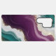 Soft flowing waves of teal and deep purple blend together with shimmering gold sparkles. A stylish abstract pattern with a modern and luxurious feel.