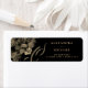 Goldene schicke und künstlerische Iris-Blume bemalen und extravagante Linien bilden einen Rahmen gegen schlichte schwarze Hochzeitsadresse mit beruflichem Text und Typografie.