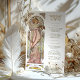 Fügen Sie Ihrem Hochzeitsempfang eine Touch von Eleganz und Eleganz hinzu. Das Aquarellwerk besticht durch eine der Mucha’s Muses, die ein Glas Champagner halten und so ein Gefühl von Luxus und Feier schaffen. Der Jugendstil zeichnet sich durch fließende Linien und Blumenmotive aus und eignet sich somit hervorragend für ein Hochzeitsmenü. Beeindrucken Sie Ihre Gäste mit dieser schönen und individuell gestaltbaren Speisekarte, die Ihr Hochzeitsessen mit Sicherheit noch angenehmer gestalten wird.