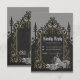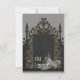 Luxus trifft Romantik. Ein kunstvoll gestalteter schwarzer, silberner goldfarbener Rahmen mit fein-filigranen Dekorationen. Diese liebevollen Details geben dem Design eine opulente Touch und umgeben den Betrachter mit einem Gefühl festlicher Vorfreude. Innerhalb dieses magischen Rahmens offenbart sich eine Frau in einem atemberaubenden Hochzeitskleid. Das Design strahlt eine Aura der Exklusivität und Wärme aus