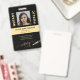Moderne klassische Typografie berufliche gesetzlich beglaubigte notarielle Kreditsignierung Agent kundenspezifische personalisierte schwarz und gold ID-Abzeichen mit elegantem schwarzen Leder-Look (PRINTED) Hintergrund und Kalligraphie Skript mit Stift Logo. ++++++++++ Einfach mit Ihrem Foto, Ihren Daten und Bar auf beiden Seiten personalisieren.