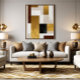Eine geometrische Zusammensetzung aus goldfarbenen und braunen Würfeln, die perfekt harmonieren. Die minimalistische und elegante Kunst spiegelt Reichtum und Raffinesse wider und macht sie zu einem perfekten Kunstwerk für moderne Umgebungen.