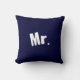 Coussin unique d'accent de bleu marine. M. dans le blanc. Décor parfait d'accent pour toute pièce
