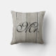 Un coussin mignon pour le monsieur sur un arrière - plan de planche à grange; vous avez donc l'aspect rustique du bois et le confort doux du coton. Faites défiler vers le bas pour voir le coussin coordinateur de Mme.