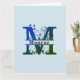 Extravagantes M - Monogramm in Blues und Grüntönen mit Silhouetten von extravaganten Schnörkeln und Schmetterlingen. Fügen Sie Ihren eigenen Namen als zentrierten Text hinzu.