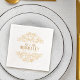 Serviettes à feuilles d'or pour votre mariage personnalisées avec votre nom de famille et date mariage entre les demi-couronnes de rose et de verdure dans un style d'art à la ligne dessinée à la main, estampillée de feuille d'or. Donnez à votre réception de mariage une touche personnalisée avec des serviettes à feuille d'or estampillées à fleurs avec des roses, Mr & Mrs, et votre nom de famille partagé dans une police d'inspiration vintage. Serviettes de rose en feuille d'or romantique pour votre mariage avec texte personnalisable et jolies illustrations florales en or.